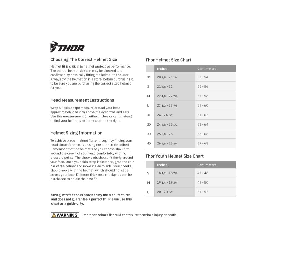 Copenhagen Motorcycles - sizeguide thor